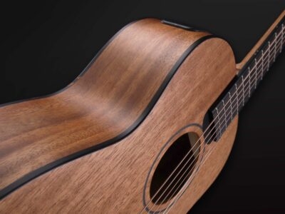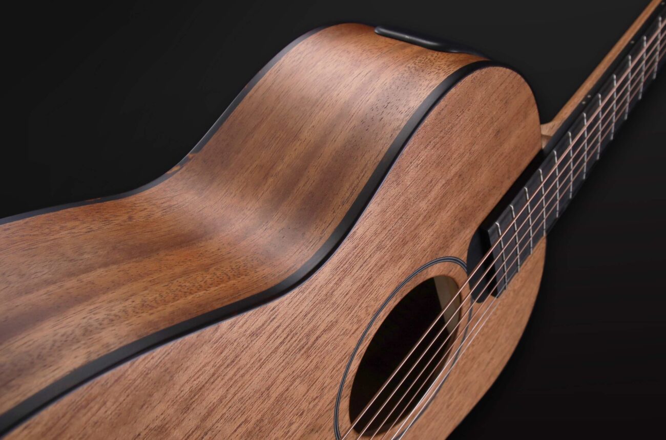 - Unique foldable travel guitar made from solid woods.
