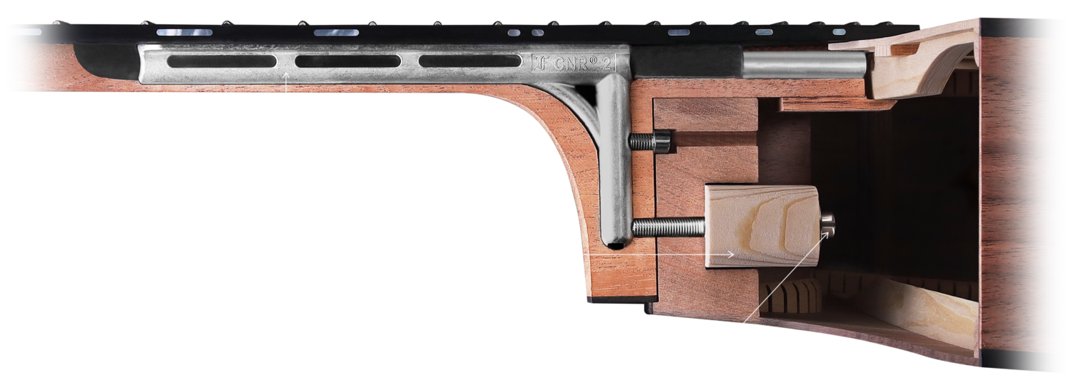 The Furch CNR System® Active neck design takes our original CNR System® to the next level, offering unparalleled stability and precision for players who demand consistent performance. This innovative design adapts seamlessly to changes in humidity while maintaining perfect playability, ensuring your guitar feels and plays the way you want it to—every time you pick it up. Featuring a dual-action truss rod encased in a rigid carbon structure, the system is further enhanced by a solid-wood expansion element that automatically adjusts the neck angle to maintain consistent string action over time. It minimizes the need for costly, time-consuming neck resets and eliminates maintenance concerns, giving you the freedom to adjust your setup quickly and easily and allowing you to immerse yourself fully in the joy of playing—because that’s what truly matters.
