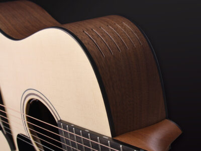 The Booster Soundport revolutionizes your playing experience by enhancing your guitar’s sound projection and body resonance. This innovative feature reduces internal air pressure within the guitar’s body, allowing the top board to move more freely and produce a stronger, fuller sound with the same strumming effort. Strategically positioned to direct sound towards you, the player, it ensures you hear your music as clearly and richly as your audience, creating an immersive and authentic performance experience every time you play. Discover the Furch Booster Soundport and unlock the full potential of your music.
