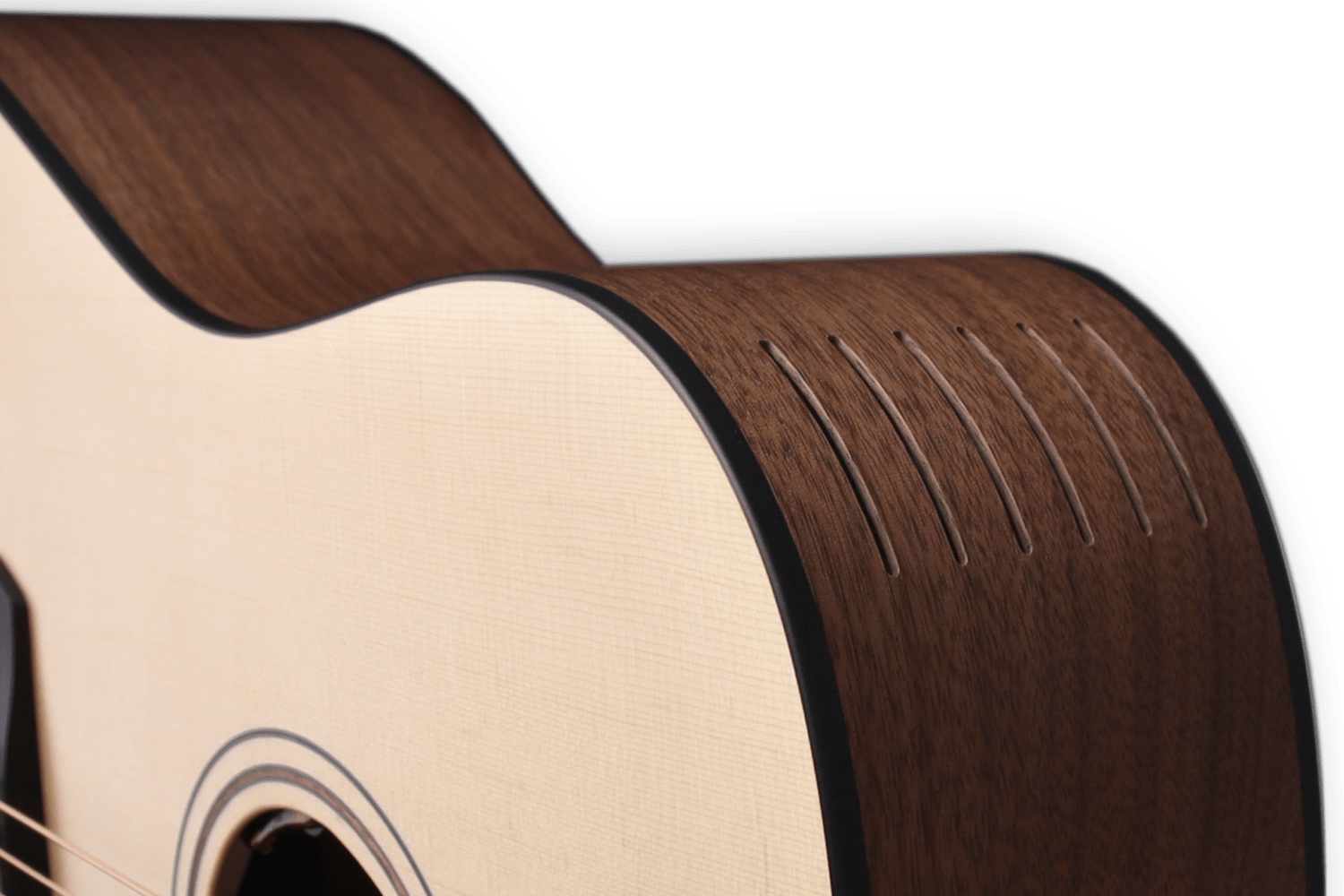 The Booster Soundport revolutionizes your playing experience by enhancing your guitar’s sound projection and body resonance. This innovative feature reduces internal air pressure within the guitar’s body, allowing the top board to move more freely and produce a stronger, fuller sound with the same strumming effort. Strategically positioned to direct sound towards you, the player, it ensures you hear your music as clearly and richly as your audience, creating an immersive and authentic performance experience every time you play. Discover the Furch Booster Soundport and unlock the full potential of your music.