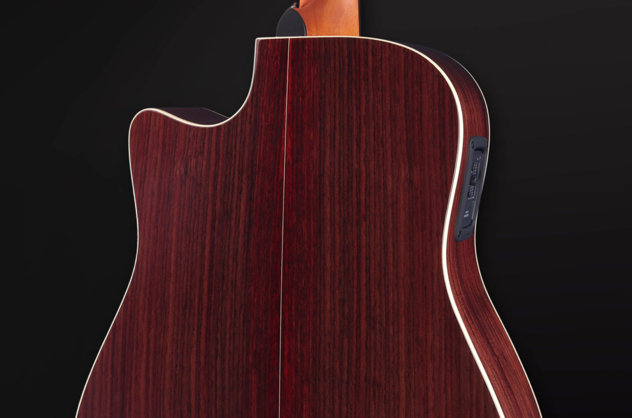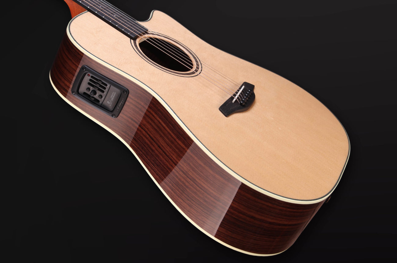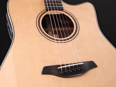 • Dreadnought body shape with cutaway.